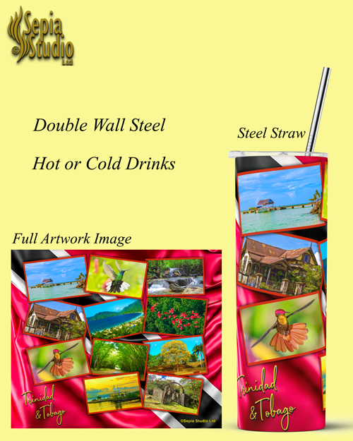 Experience the Vibrant Spirit of Trinidad and Tobago with Sublimated 20oz Steel Tumblers! Our high-quality tumblers not only keep your drinks hot or cold for hours, but also showcase stunning images of the beautiful Caribbean nation.