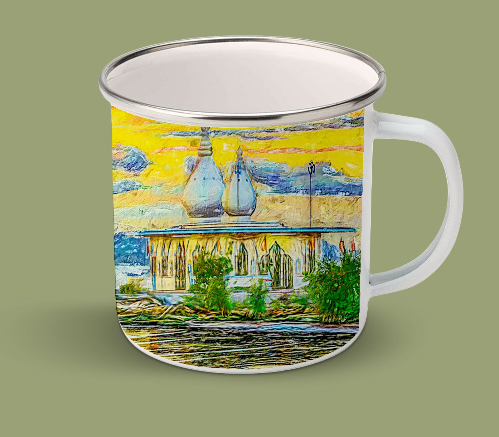 Enamel Mugs 17oz ( Digital Art ) Temple on the Sea